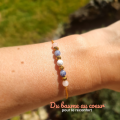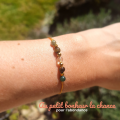 - Des perles en verre cristal doré viennent parfaire cette composition.