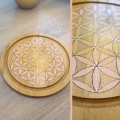 Une création réalisé en pièce unique, qui peut servir de décoration, mais aussi pour recharger tes pierres, redynamiser ton eau ou tout autre chose que tu y poseras. Le plateau fleur de vie est réalisé en pleine conscience avec des intentions positives et beaucoup d’amour. Les motifs sont pyrogravés et peints à la main.