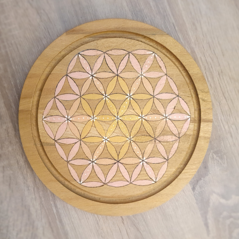 Petit plateau Fleur de vie rose pale est un accessoire à la fois décoratif et énergétique.